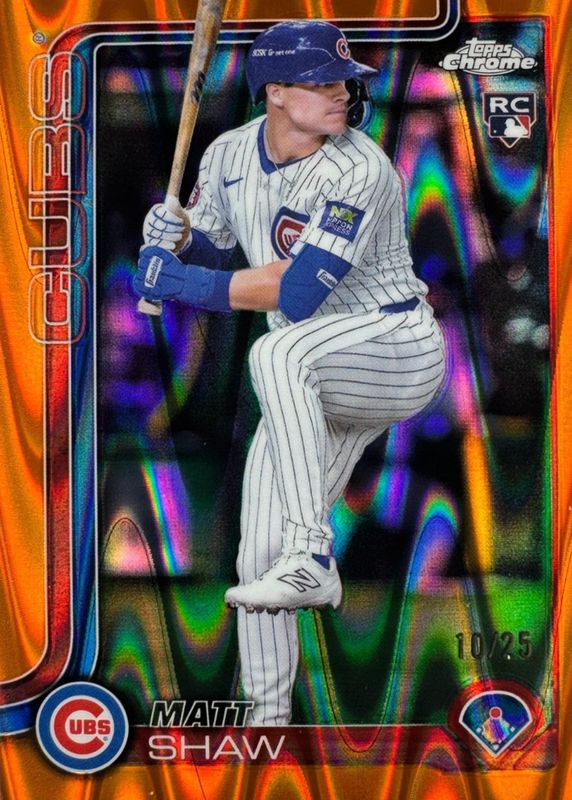 Best Prices Available For Sale of Matt Shaw 2025 Topps Chrome #219 Orange RayWave Refractor /25