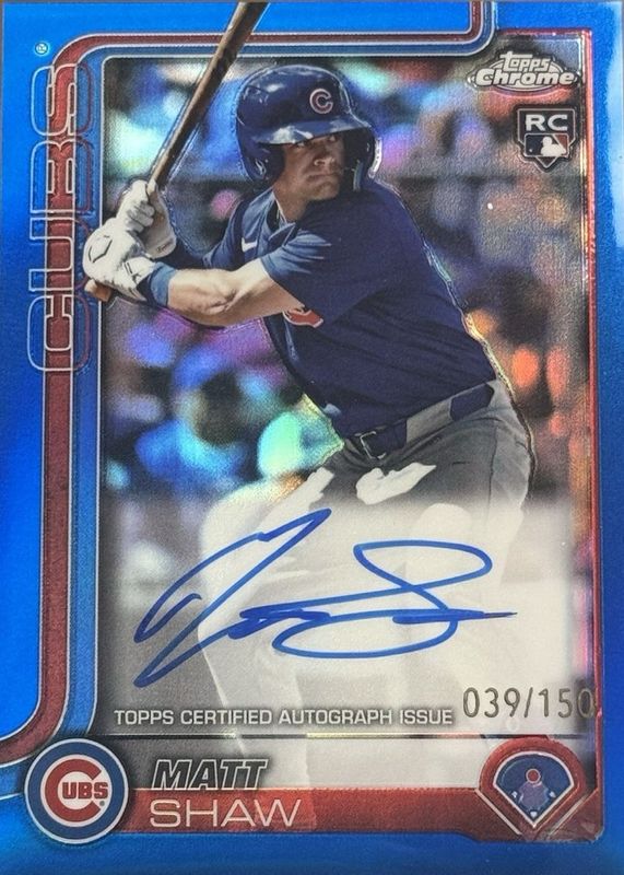 2025 Topps Chrome Blue Refractor Matt Shaw Cubs RC Rookie ON CARD AUTO 19/150