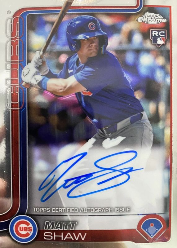 2025 Topps Chrome Matt Shaw Auto Rookie Card RC Cubs Autograph