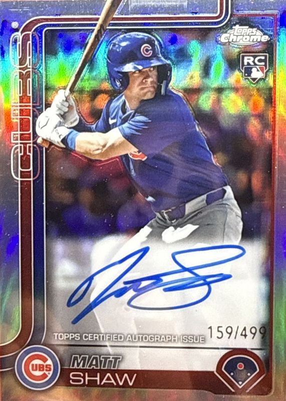 2025 Topps Chrome Rookie Auto Matt Shaw #RA-MS True Refractor 54/499 RC Cubs