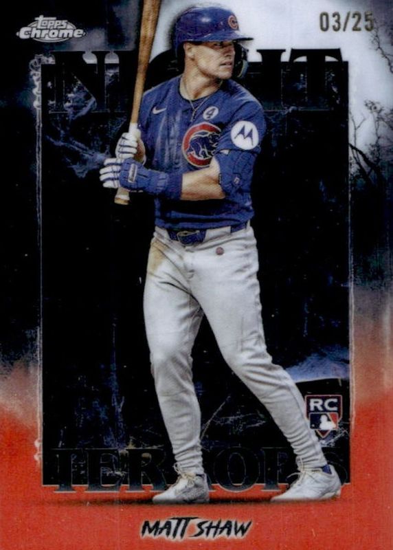 Matt Shaw 2025 Topps Chrome Update #NT-20 Night Terrors - Orange Refractor /25 Rookie RAW Price Guide