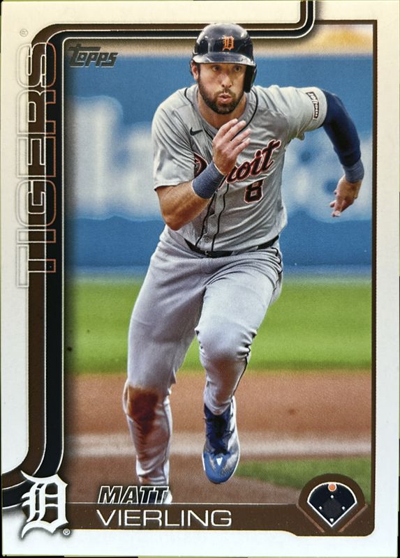 The Matt Vierling 2025 Topps #166 Base card is 1 of 62 Matt Vierling's card variations in the 2025 Topps set being tracked by Sports Card Investor, including Aqua Holo Foil, Diamante Foil, Holo Foil, Pink Diamante Foil, and Pink Holo Foil.