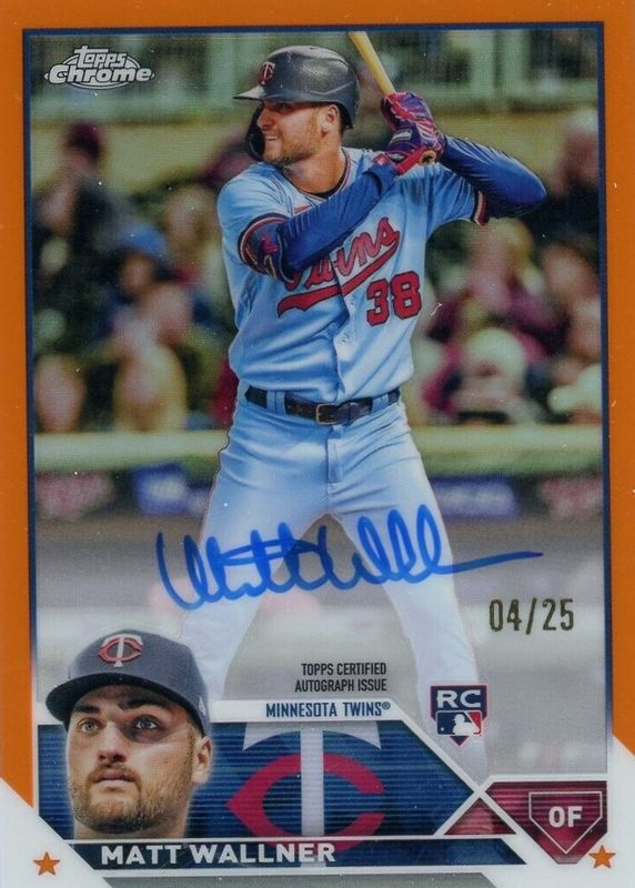 2023 Topps Chrome Orange Refractors Matt Wallner RC Rookie AUTO 03/25 TWINS