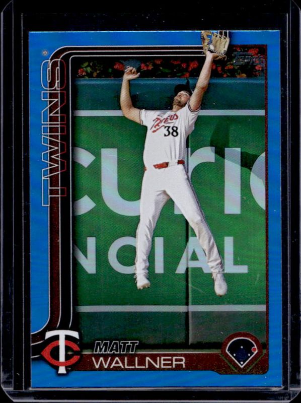 The Matt Wallner 2025 Topps #547 Blue Rainbow /150 card is 1 of 61 Matt Wallner's card variations in the 2025 Topps set being tracked by Sports Card Investor, including Base, Aqua Holo Foil, Diamante Foil, Holo Foil, and Pink Diamante Foil.