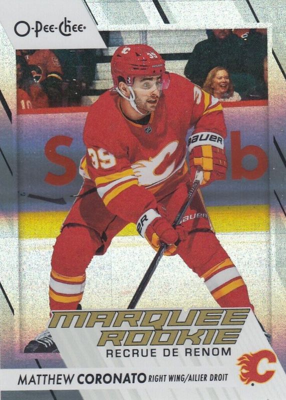 This card is 1 of 14 Matthew Coronato's card variations in the 2023 O-Pee-Chee set being tracked by Sports Card Investor, including Marquee Rookies, Marquee Rookies - Blue Border, Marquee Rookies - Red Border, Marquee Rookies - Retro, and Marquee Rookies - Retro Blank Back.