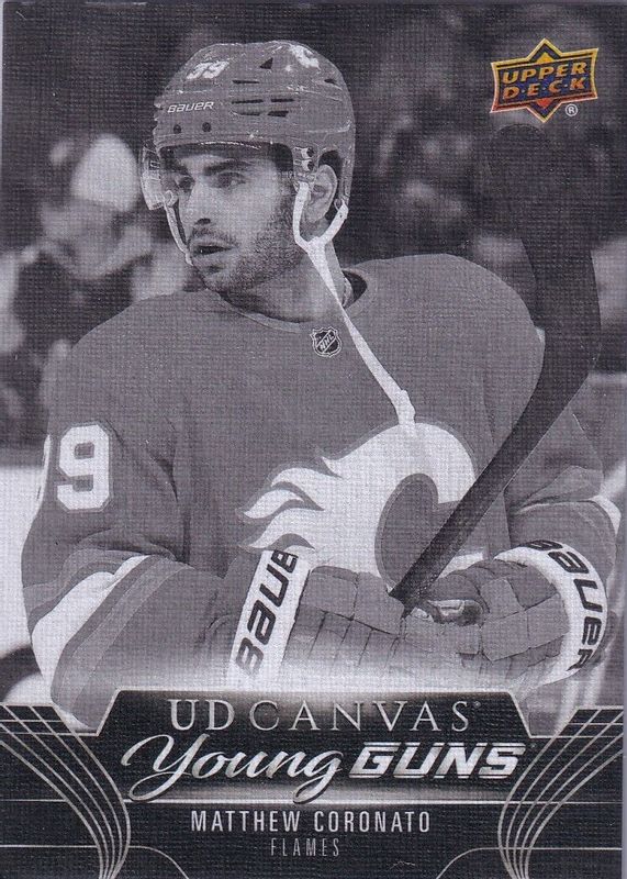 The Matthew Coronato 2023 Upper Deck #C106 Young Guns Canvas - Black & White Rookie card in Raw condition has not changed in price in the last 30 days and was last sold for $13.00 .