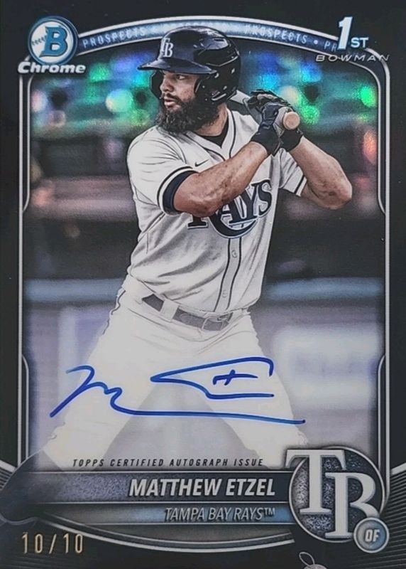 Best Prices Available For Sale of Matthew Etzel 2025 Bowman Chrome #CPA-ME Prospect Auto - Black Refractor /10 (1st)