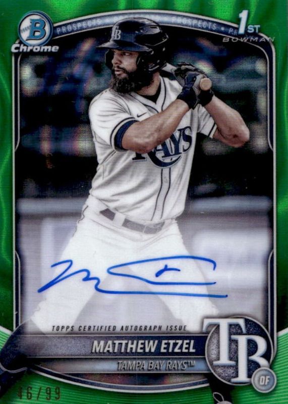 2025 Bowman Chrome Matthew Etzel Auto Green Lava Refractor /99 1st Prospect Rays