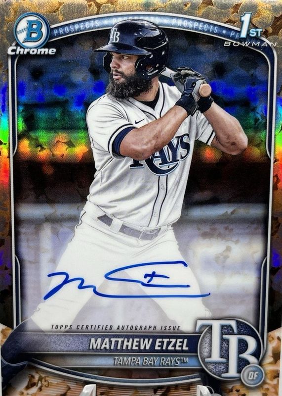 Best Prices Available For Sale of Matthew Etzel 2025 Bowman Chrome #CPA-ME Prospect Auto - Popcorn Refractor /5 (1st)