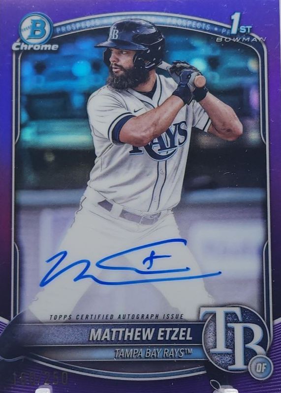 2025 Bowman Chrome Matthew Etzel Auto Purple Refractor 1st Prospect #82/250 Rays