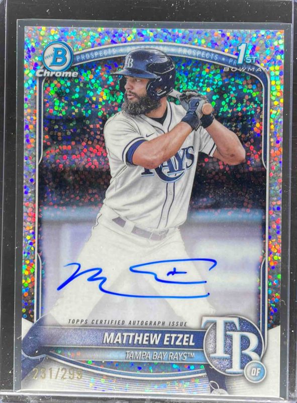2025 Bowman Chrome Matthew Etzel 1st Speckle Auto Refractor /299 Rays Rookie RC