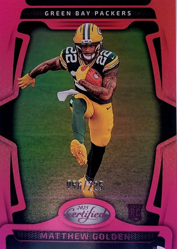 2025 CERTIFIED MATTHEW GOLDEN MIRROR PINK ROOKIE CARD /225 PACKERS NFL 116