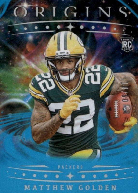 This card is 1 of 46 Matthew Golden's card variations in the 2025 Origins set being tracked by Sports Card Investor, including Base, Holo Red /299, Holo Orange /249, Red /225, and Holo Blue /199.