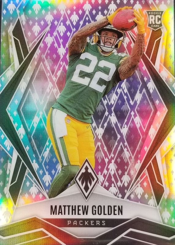 The Matthew Golden 2025 Phoenix #174 Phoenix /149 Rookie card in Raw condition has moved down -$8.51 (-65.5%) in the last 30 days and was last sold for $4.49 .