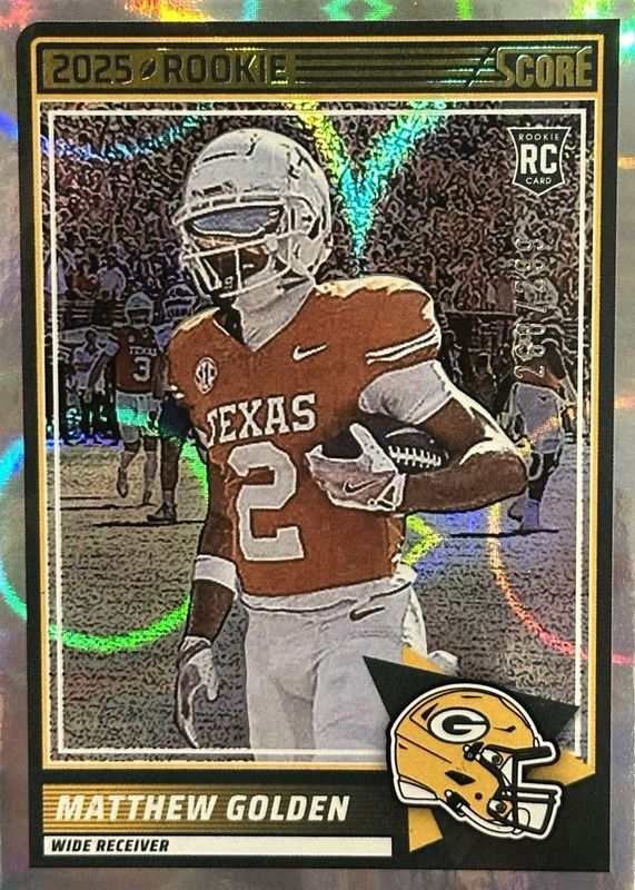 This card is 1 of 26 Matthew Golden's card variations in the 2025 Score set being tracked by Sports Card Investor, including Base, Gold, Green, Orange, and Purple.