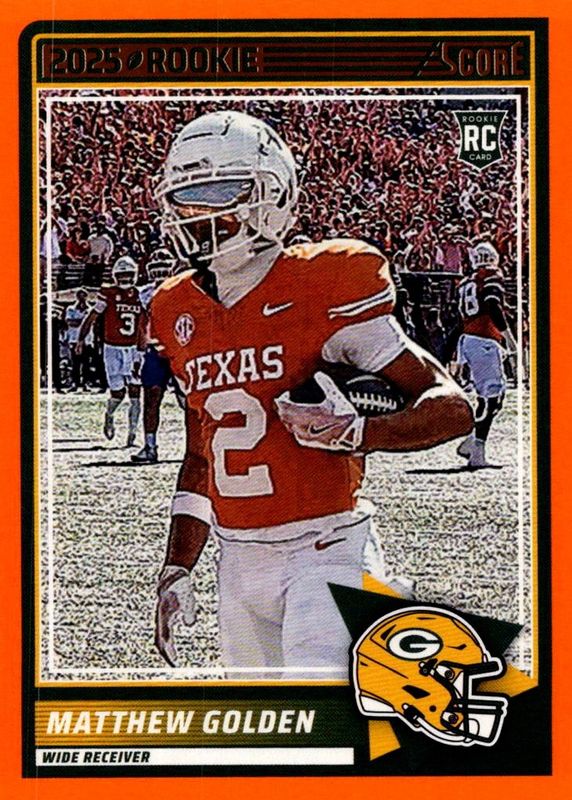 The Matthew Golden 2025 Score #56 Orange Rookie card in Raw condition has not changed in price in the last 30 days and was last sold for $2.25 .
