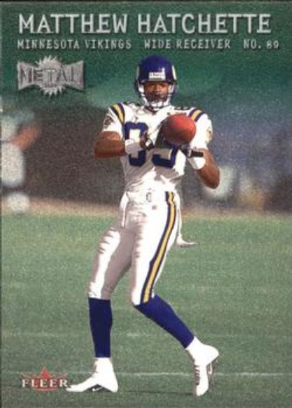 The Matthew Hatchette 2000 Metal #54 Emerald card is 1 of 2 Matthew Hatchette's card variations in the 2000 Metal set being tracked by Sports Card Investor, including Base.