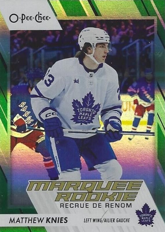 23/24 O-PEE-CHEE MARQUEE ROOKIE RAINBOW GREEN PARALLEL #573 Matthew Knies #11/33