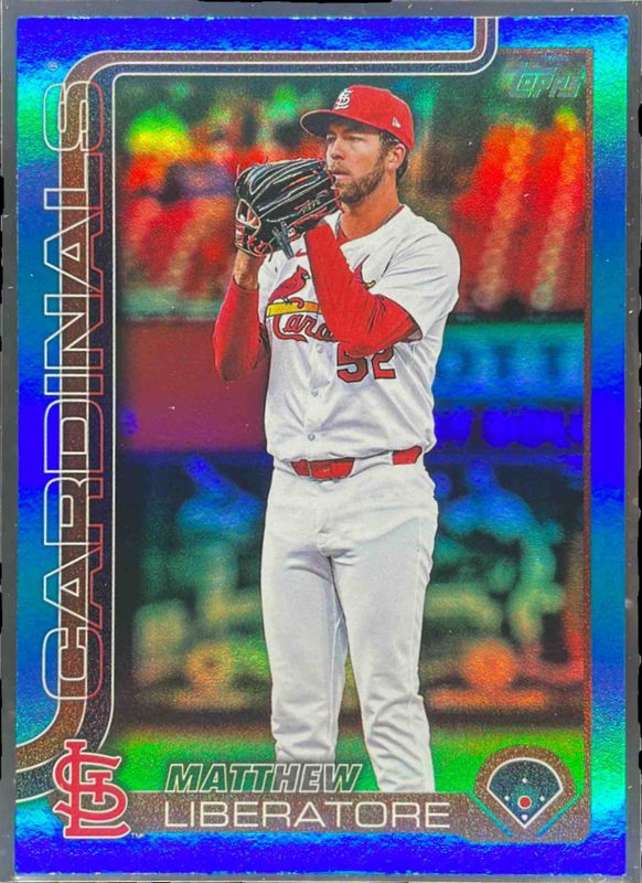 The Matthew Liberatore 2025 Topps Update #US185 Blue Holo Foil /150 card is 1 of 52 Matthew Liberatore's card variations in the 2025 Topps Update set being tracked by Sports Card Investor, including Base, Aqua Holo Foil, Aqua Rainbow Foil, Diamante Foil, and Holiday.