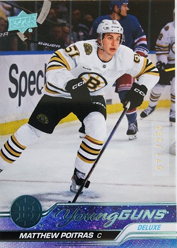 The Matthew Poitras 2023 Upper Deck #478 Young Guns - Deluxe /250 Rookie card in Raw condition has not changed in price in the last 30 days and was last sold for $16.77 .