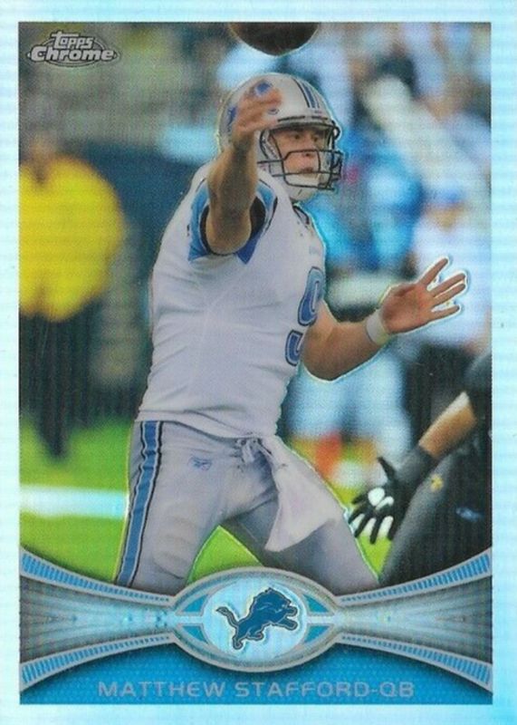 The Matthew Stafford 2012 Topps Chrome #126 Refractor card in Raw condition has moved up $0.50 (+25.1%) in the last 30 days and was last sold for $2.49 .