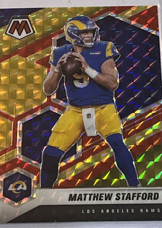 Auctions Ending Soon for Matthew Stafford 2021 Mosaic #116 Choice Fusion Red & Yellow /80 RAW