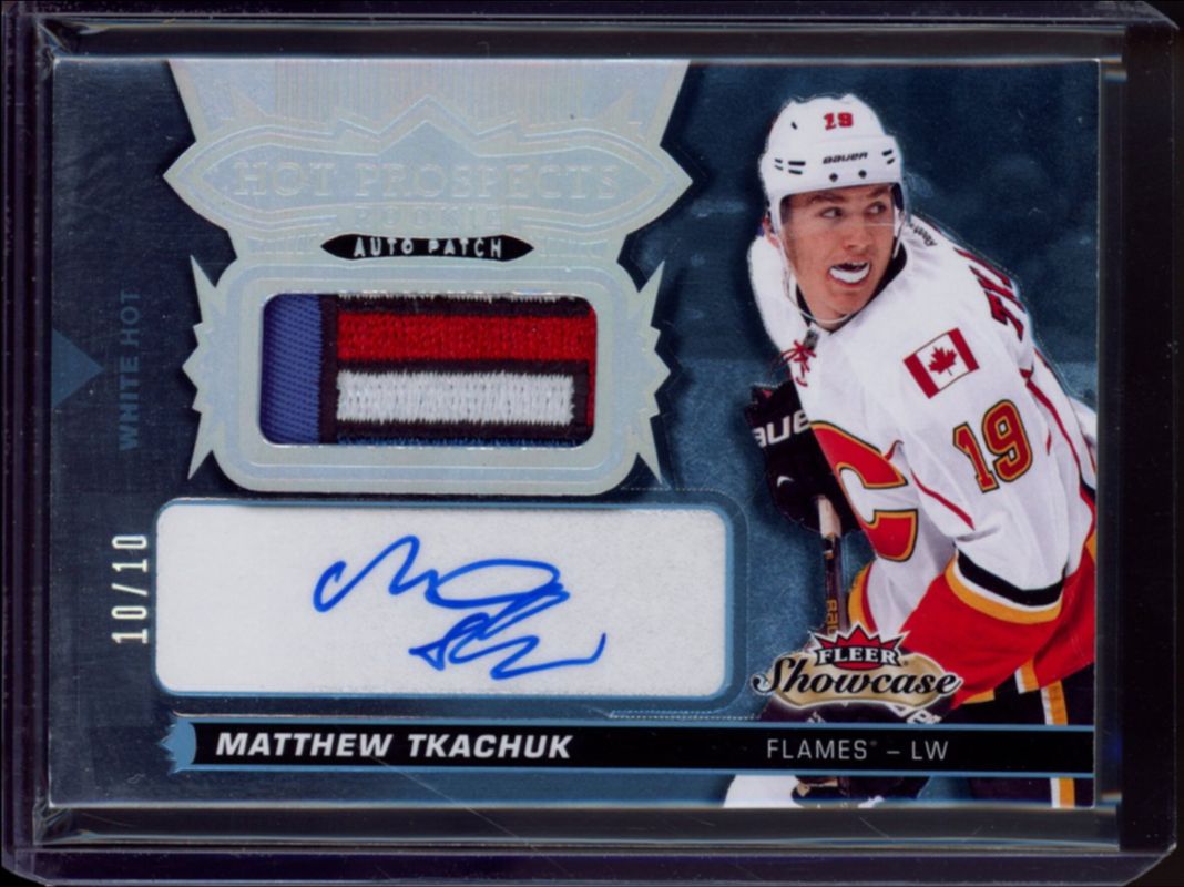Matthew Tkachuk 2016 Fleer Showcase #182 Hot Prospects Autographs Patch White Hot /10 Rookie RAW Price Guide