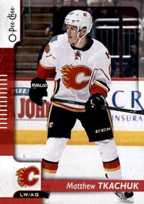 The Matthew Tkachuk 2017 O-Pee-Chee #22 Red card is 1 of 6 Matthew Tkachuk's card variations in the 2017 O-Pee-Chee set being tracked by Sports Card Investor, including Base, Rainbow Foil, Retro, Retro Blank Back, and Black Rainbow Foil /100.