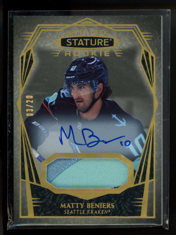 Matty Beniers 2022 Upper Deck Stature #102 Auto Patch - Design Variant /5 Rookie SGC 9 Price Guide
