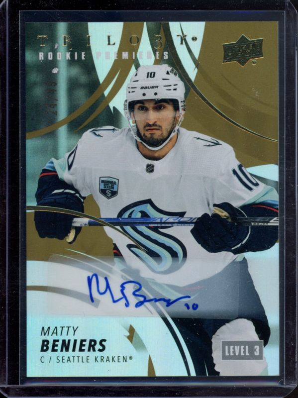Matty Beniers 2022 Upper Deck Trilogy #199 Gold Autographs /149 Rookie RAW Price Guide