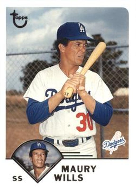 The Maury Wills 2003 Topps Retired Signature Edition #9 Base card is 1 of 4 Maury Wills' card variations in the 2003 Topps Retired Signature Edition set being tracked by Sports Card Investor, including Black /99, Autographs, and Autographs - Refractor /25.