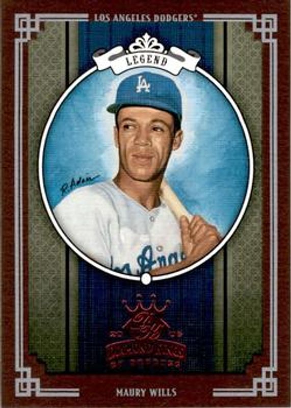 The Maury Wills 2005 Diamond Kings #290 Framed Red card is 1 of 45 Maury Wills' card variations in the 2005 Diamond Kings set being tracked by Sports Card Investor, including Base, Non Canvas, Framed Blue /100, Bronze /50, and Framed Green /50.
