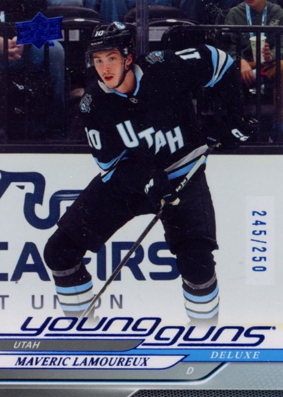 The Maveric Lamoureux 2024 Upper Deck #487 Young Guns - Deluxe /250 Rookie card in Raw condition has moved up $6.21 (+69.1%) in the last 30 days and was last sold for $15.20 .