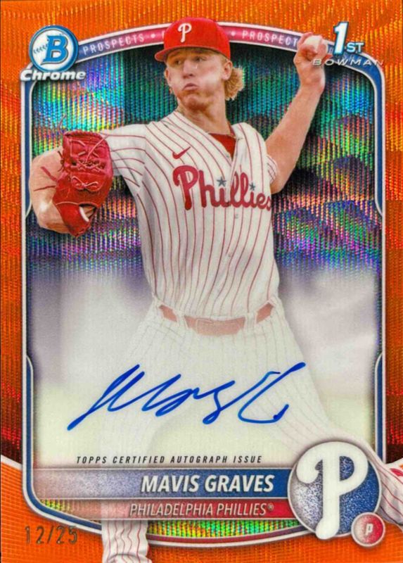 Mavis Graves 2025 Bowman Chrome #CPA-MG Prospect Auto - Orange Wave Refractor /25 (1st) RAW Price Guide