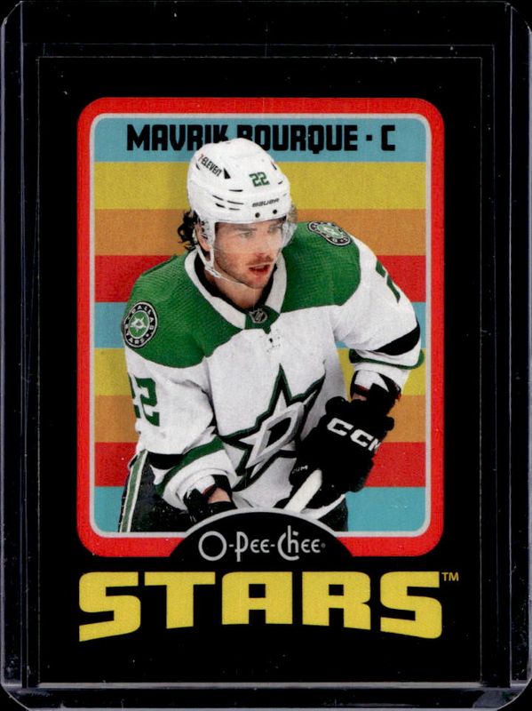 The Mavrik Bourque 2024 O-Pee-Chee #562 Retro - Black Border /100 Rookie card is 1 of 28 Mavrik Bourque's card variations in the 2024 O-Pee-Chee set being tracked by Sports Card Investor, including Base, Blue Border, Red Border, Yellow Border, and Rainbow /350.