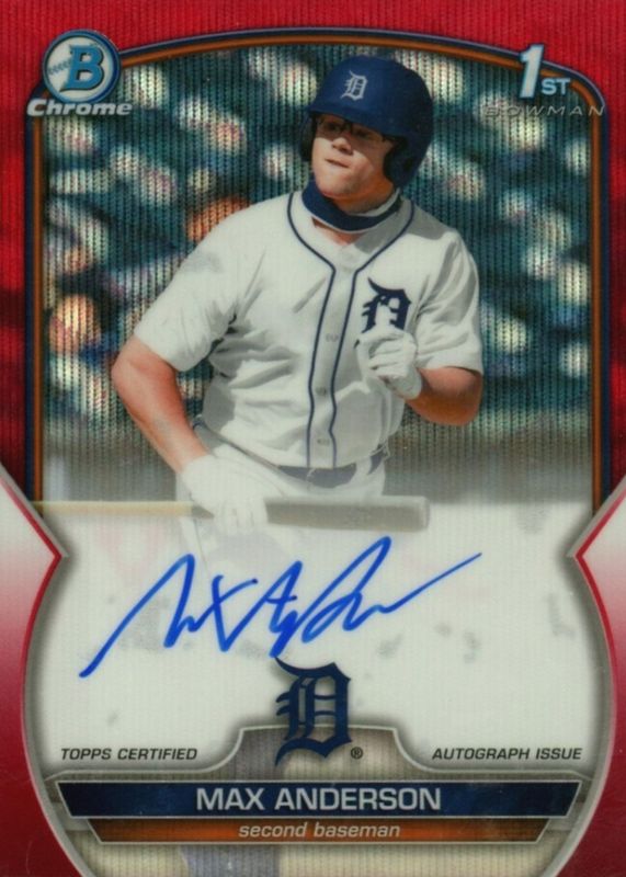 Max Anderson 2023 Bowman Draft #CDA-MA Chrome Prospect Auto - Red Wave Refractor /5 (1st) BGS 9 Price Guide