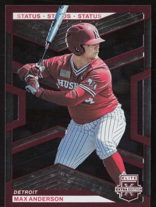 The Max Anderson 2023 Elite Extra Edition #106 Status Red /199 card is 1 of 39 Max Anderson's card variations in the 2023 Elite Extra Edition set being tracked by Sports Card Investor, including Base, Pink, Signatures, Status Green /499, and Signatures die-cut /399.