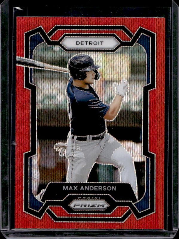 The Max Anderson 2024 Prizm #98 Ruby Wave card is 1 of 30 Max Anderson's card variations in the 2024 Prizm set being tracked by Sports Card Investor, including Base, Blue Ice, Green, Green Ice, and Pink Ice.