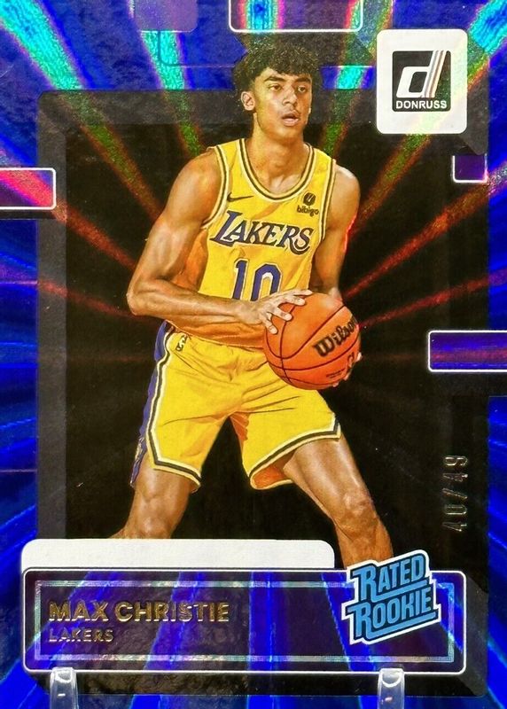 This card is 1 of 20 Max Christie's card variations in the 2022 Donruss set being tracked by Sports Card Investor, including Base, Press Proof Purple /199, Holo Laser /149, Choice Red /99, and Holo Purple Laser /99.