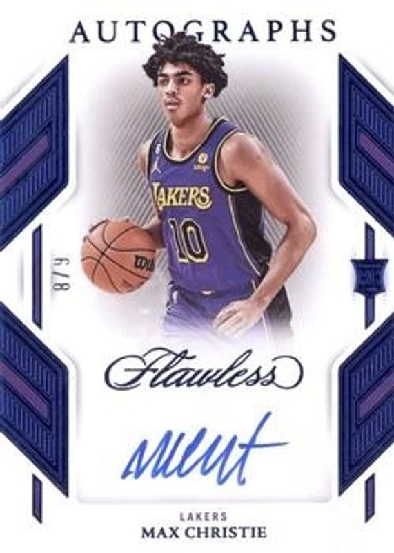 The Max Christie 2022 Flawless #FA-MAX Flawless Autographs - Blue /8 Rookie card is 1 of 43 Max Christie's card variations in the 2022 Flawless set being tracked by Sports Card Investor, including Base /5, Gold /10, Emerald /5, Platinum /1, and Flawless Autographs /25.