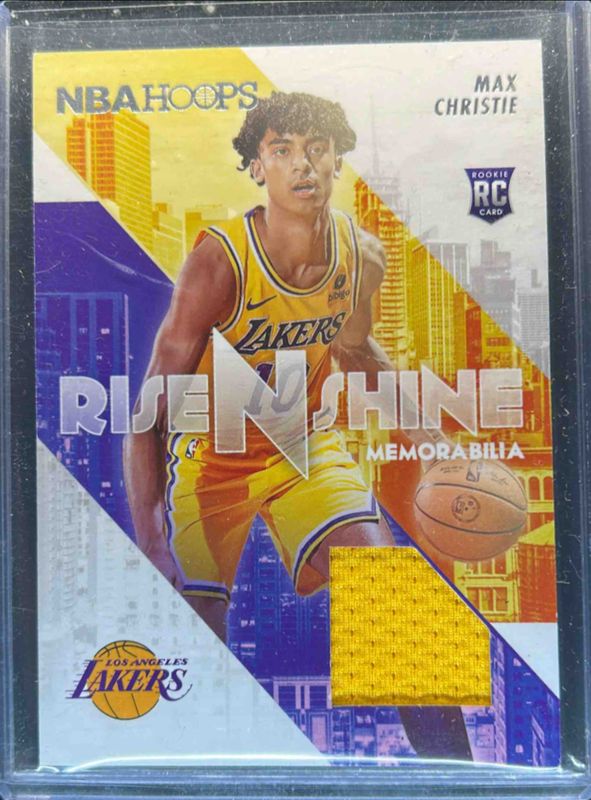 The Max Christie 2022 Hoops #RS-MC Rise N Shine Memorabilia Rookie card is 1 of 41 Max Christie's card variations in the 2022 Hoops set being tracked by Sports Card Investor, including Base, Blue, Hyper Blue, Impulse, and Neon Green.