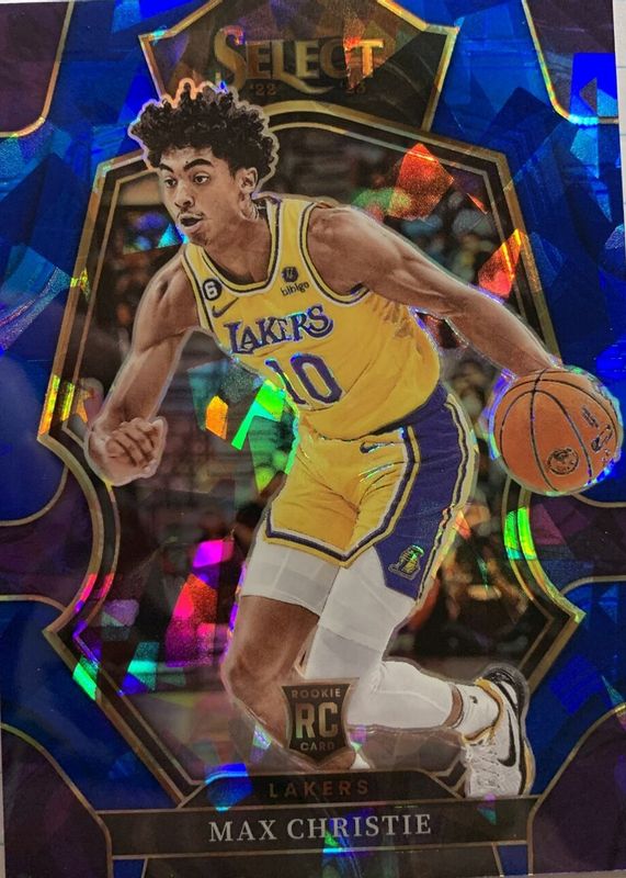 2022-23 Panini Select Max Christie #181 LA Lakers RC Blue Cracked Ice Prizms