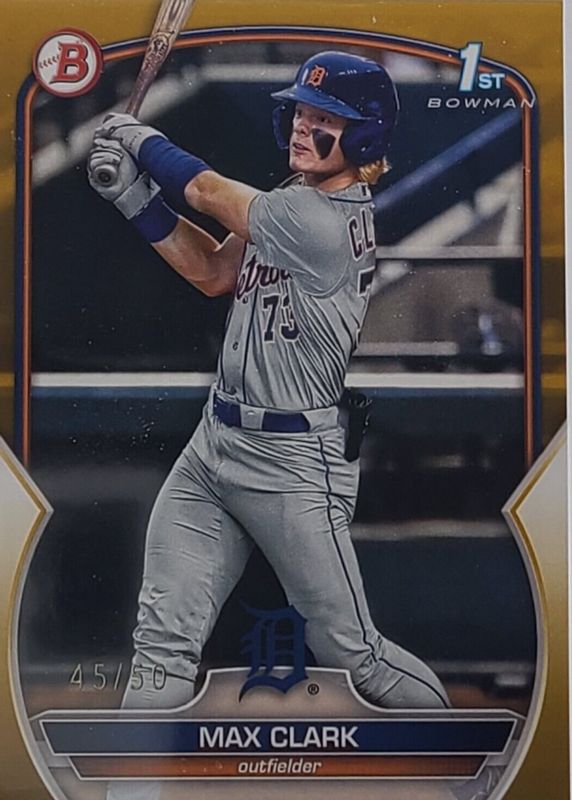 Auctions Ending Soon for Max Clark 2023 Bowman Draft #BD-76 Gold /50 (1st) RAW