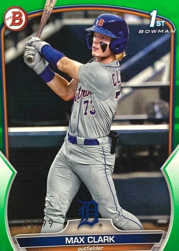 2023 Bowman Draft Max Clark Green Paper 1st Prospect #34/99 Tigers