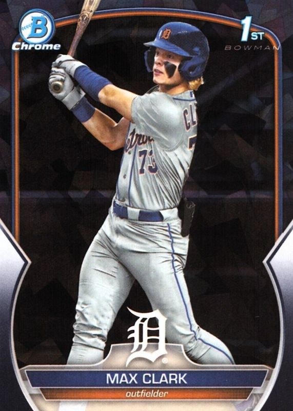 This card is 1 of 18 Max Clark's card variations in the 2023 Bowman Draft Sapphire Edition set being tracked by Sports Card Investor, including Chrome (1st), Chrome - Yellow /75 (1st), Chrome - Gold /50 (1st), Chrome - Orange /25 (1st), and Chrome - Red /5 (1st).