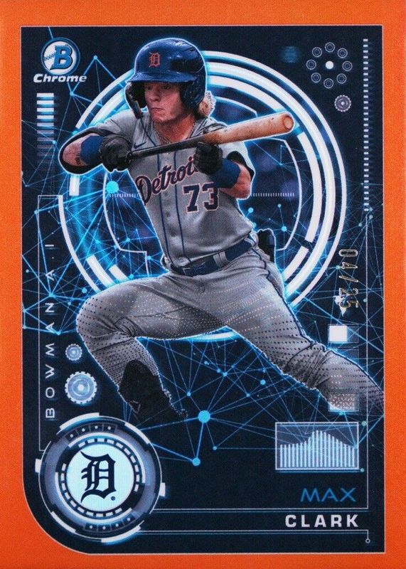 The Max Clark 2024 Bowman #BAI-11 Bowman AI - Orange Refractor /25 card in Raw condition has not changed in price in the last 30 days and was last sold for $39.99 .