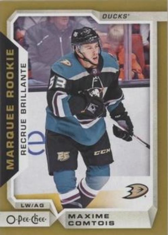 The Max Comtois 2018 Upper Deck #622 2018 O-Pee-Chee Update - Gold Rookie card is 1 of 28 Max Comtois' card variations in the 2018 Upper Deck set being tracked by Sports Card Investor, including Young Guns Base, Young Guns Canvas, Young Guns - Clear Cut, Young Guns - Jumbo, and Young Guns - Silver Foil.