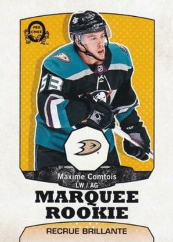 The Max Comtois 2018 Upper Deck #622 2018 O-Pee-Chee Update Retro Rookie card is 1 of 28 Max Comtois' card variations in the 2018 Upper Deck set being tracked by Sports Card Investor, including Young Guns Base, Young Guns Canvas, Young Guns - Clear Cut, Young Guns - Jumbo, and Young Guns - Silver Foil.