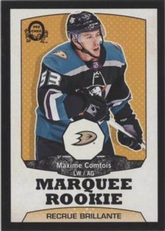 The Max Comtois 2018 Upper Deck #622 2018 O-Pee-Chee Update Retro - Black /100 Rookie card is 1 of 28 Max Comtois' card variations in the 2018 Upper Deck set being tracked by Sports Card Investor, including Young Guns Base, Young Guns Canvas, Young Guns - Clear Cut, Young Guns - Jumbo, and Young Guns - Silver Foil.