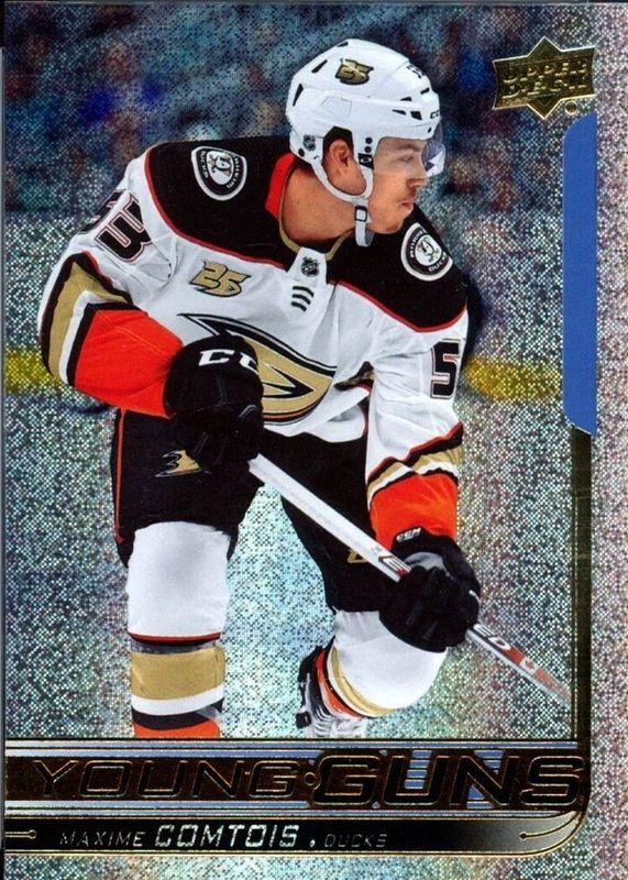 This card is 1 of 8 Max Comtois' card variations in the 2018 Upper Deck set being tracked by Sports Card Investor, including Young Guns Base, Young Guns Canvas, Young Guns - Clear Cut, Young Guns - Jumbo, and Young Guns - Silver Foil.